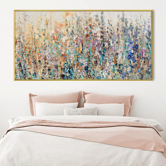 Vibrant Floral Landscape Oil Painting - Colorful Flower Field Art Piece for Home Decor