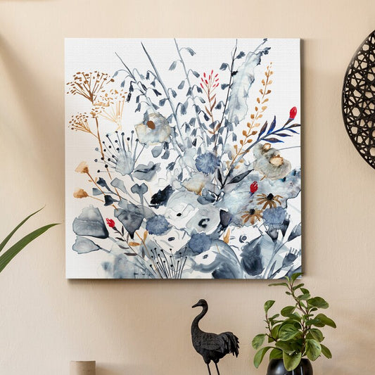 Elegant Floral Abstract in Indigo and Ochre Tones for Modern Decor