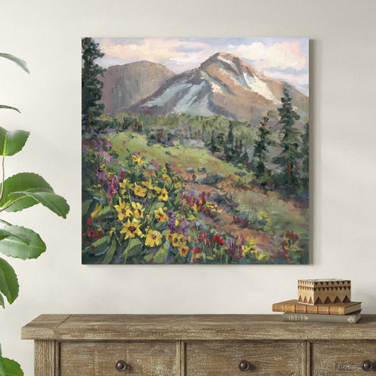Serene Mountain Landscape with Vibrant Wildflowers Oil Painting