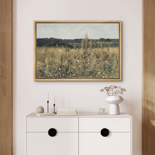 Rustic Wildflower Landscape Oil Painting for Cozy Farmhouse Decor