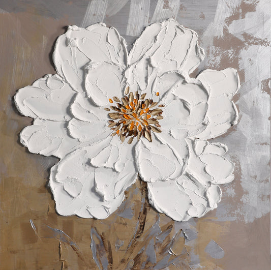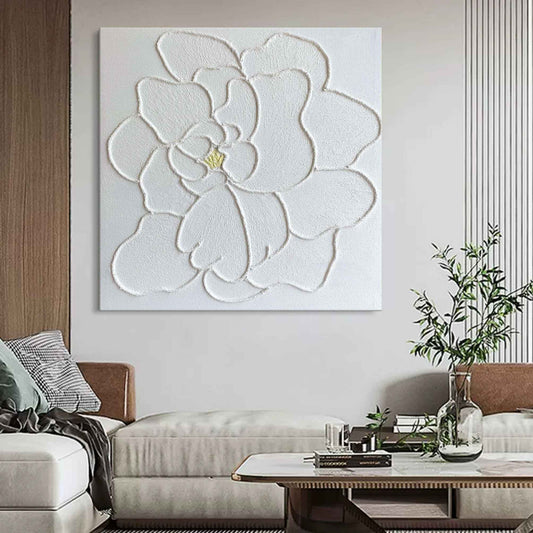 Elegant White Flower Oil Painting with Textured Plaster Finish for Home Decor
