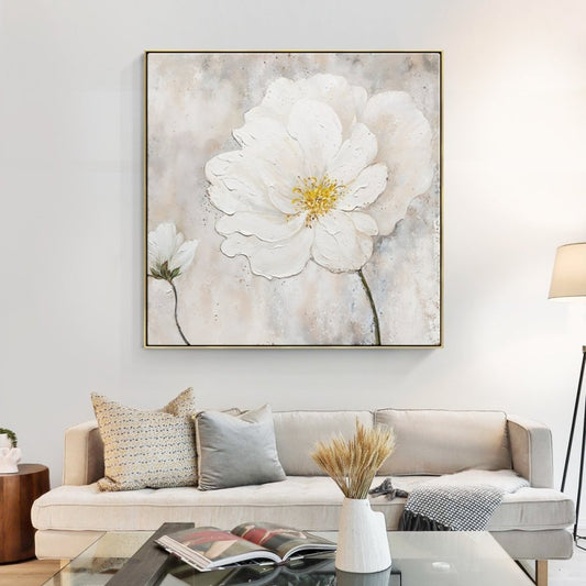 Elegant White Flower Oil Painting for Minimalist Home Decor and Wall Art