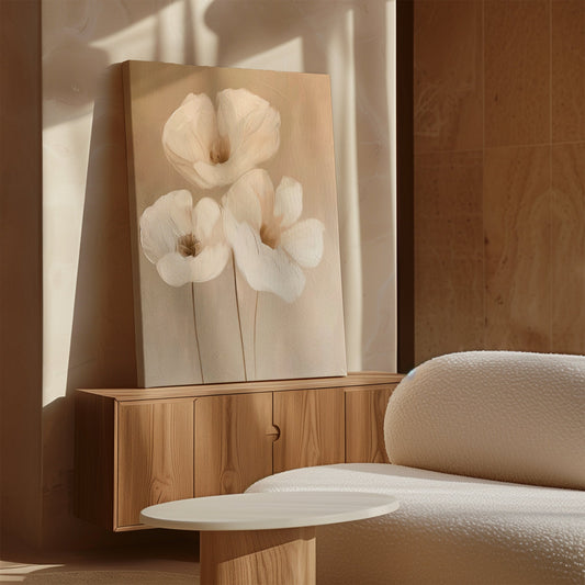Elegant Ivory Flower Oil Paintings - Set of Two Floral Wall Art Decor