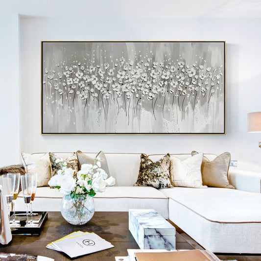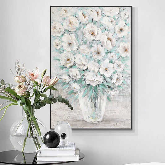 Elegant White Floral Oil Painting for Home Decor and Serenity