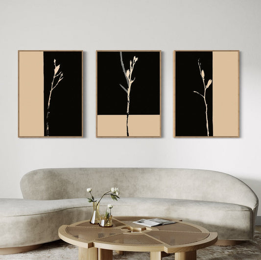 Elegant Black and Gold Floral Triptych Oil Painting for Modern Home Decor