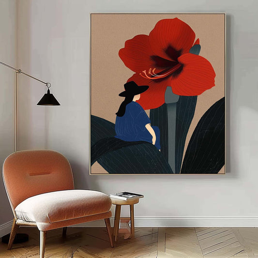 Charming Woman and Red Flower Oil Painting for Modern Home Decor