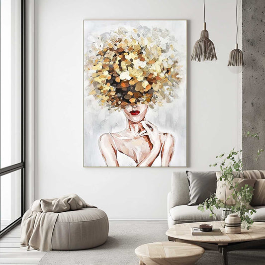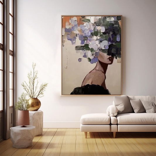 Abstract Floral Woman Oil Painting - Modern Art Canvas for Home Décor