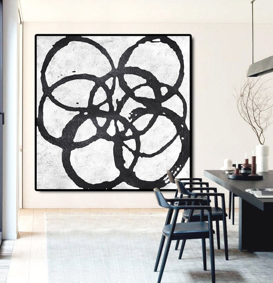 Contemporary Abstract Black and White Floral Oil Painting for Modern Home Decor