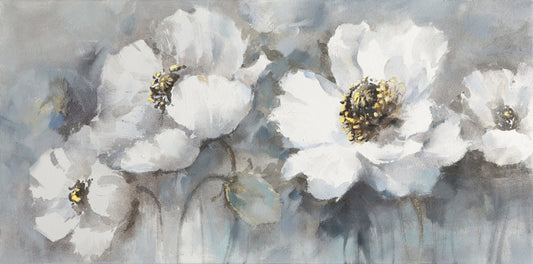 Blossoming White Flowers Oil Painting - Serene Spring Decor for Home and Office