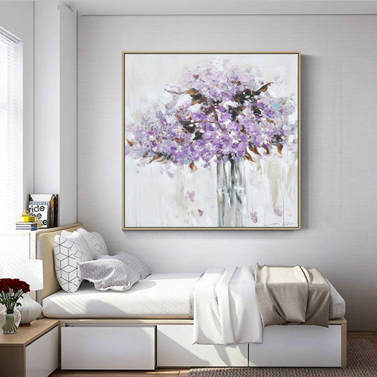 Charming Lavender Blooms in Elegant Glass Vase - Serene Floral Oil Painting