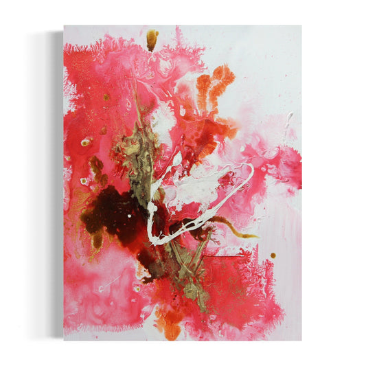 Abstract Floral Oil Painting in Vibrant Pink and Gold Hues for Modern Decor