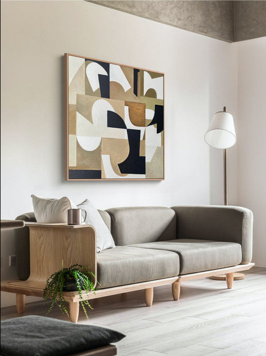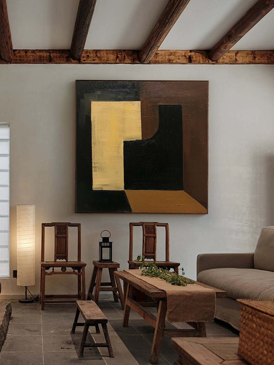 Abstract Minimalist Geometric Oil Painting in Earthy Tones for Modern Decor