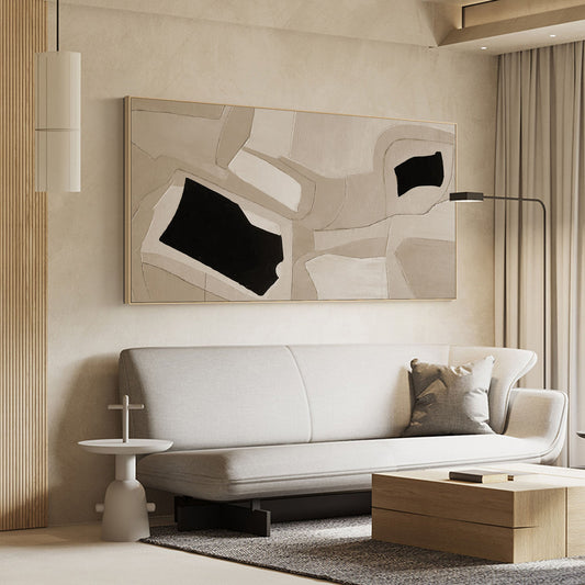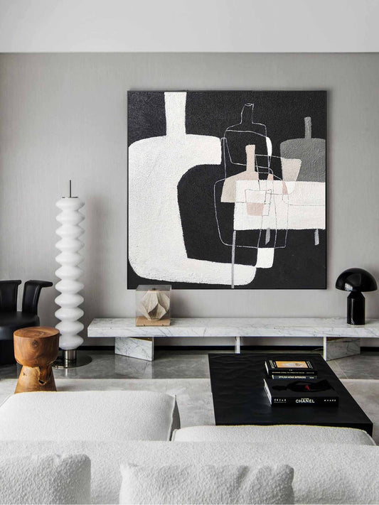 Contemporary Black and White Geometric Oil Painting for Modern Interiors