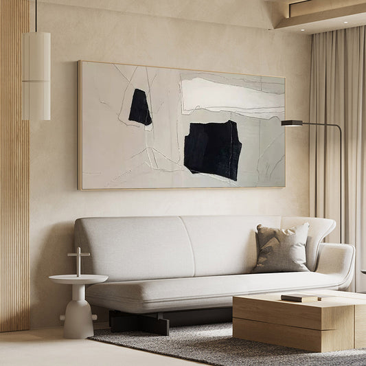 Contemporary Minimalist Black and White Geometric Oil Painting for Modern Decor
