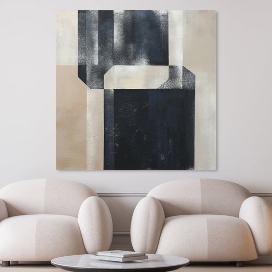 Contemporary Geometric Oil Painting in Bold Black and Neutral Tones for Modern Decor