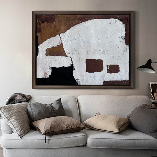 Contemporary Abstract Oil Painting with Bold Geometric Shapes and Earthy Tones