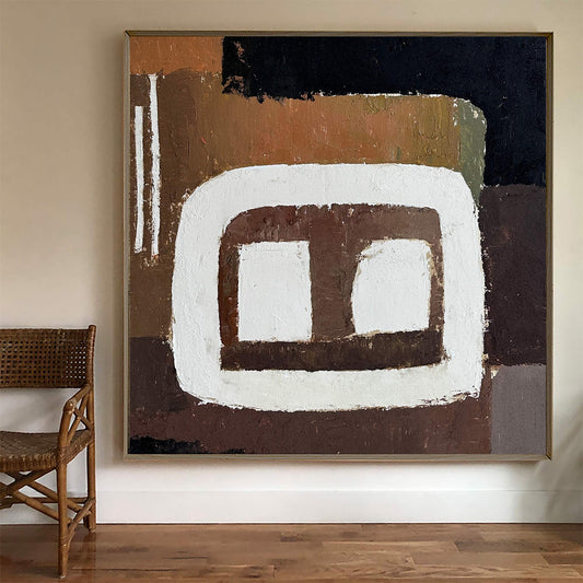 Contemporary Brown Abstract Oil Painting with Geometric Design for Modern Decor