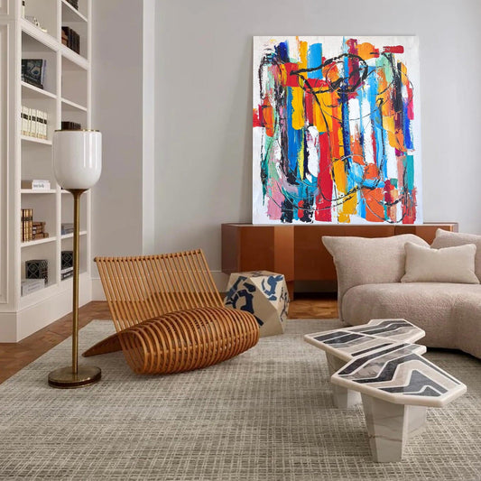 Modern Abstract Geometric Oil Painting in Vibrant Colors for Contemporary Decor