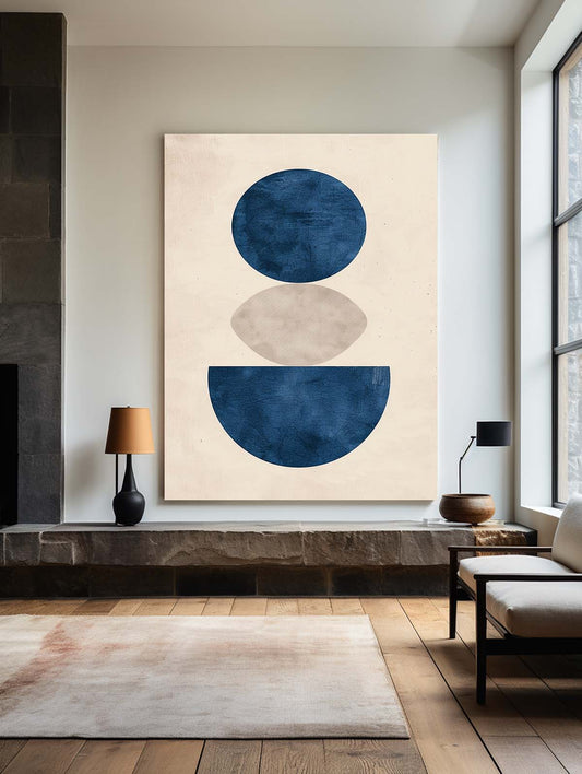 Contemporary Blue Geometric Abstract Oil Painting for Modern Home Decor