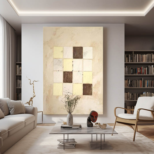 Elegant Beige Geometric Abstract Oil Painting for Modern Home Decor