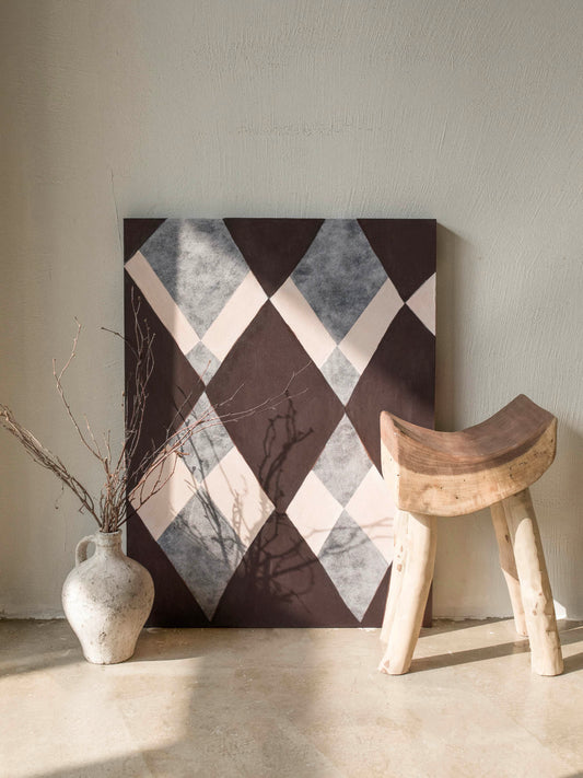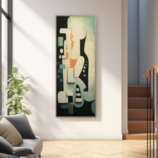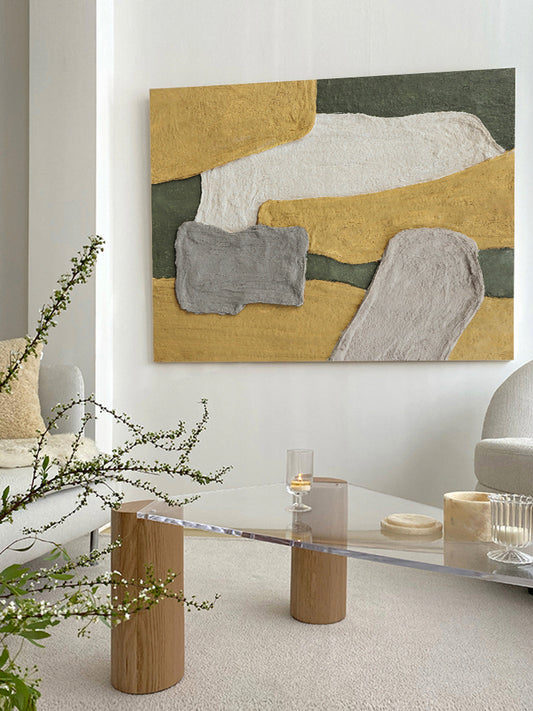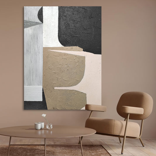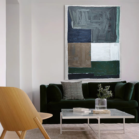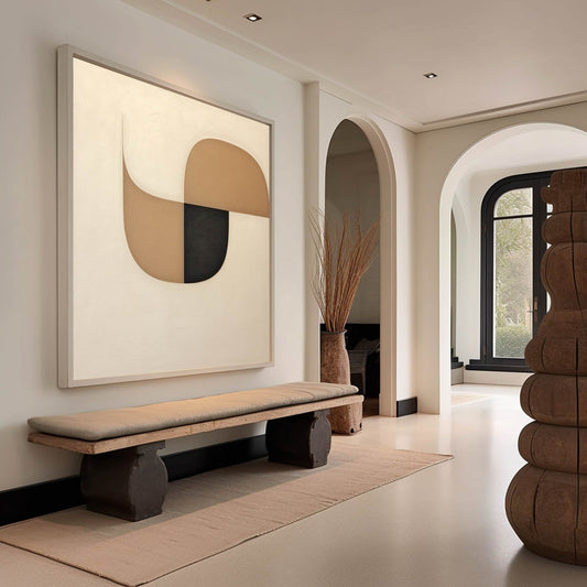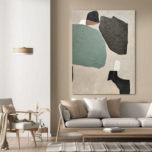 Abstract Geometric Oil Painting for Modern Home Decor and Wabi-Sabi Aesthetics