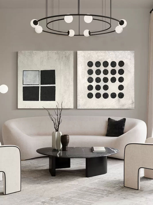 Modern Abstract Duo - Black and White Geometric Oil Paintings for Contemporary Decor