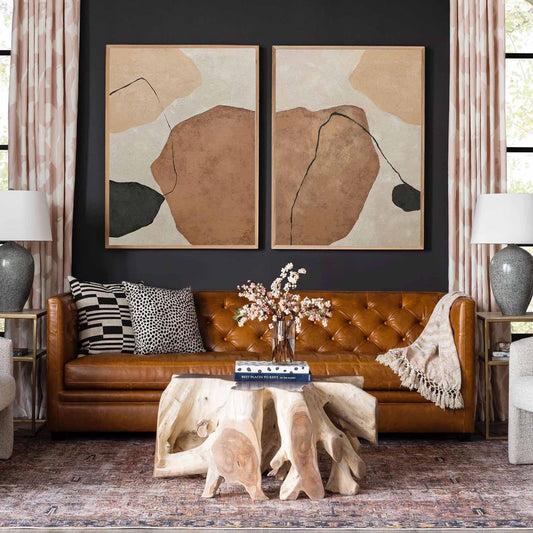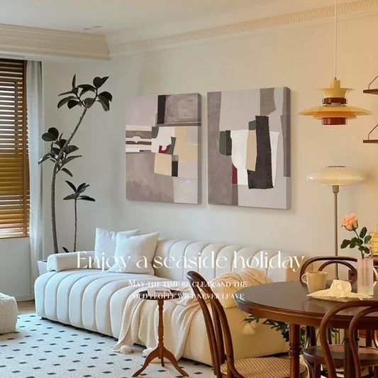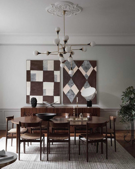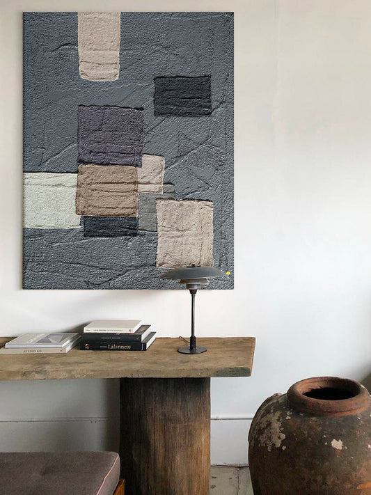 Abstract Geometric Oil Painting in Earth Tones for Modern Home Decor
