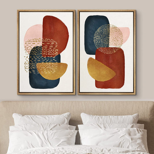 Abstract Mid-Century Oil Painting Set with Bold Geometric Shapes