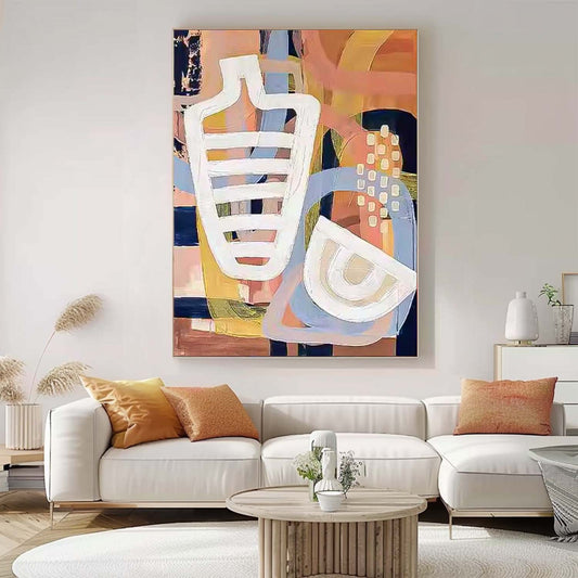 Abstract Geometric Oil Painting with Soft Pastel Colors for Modern Decor