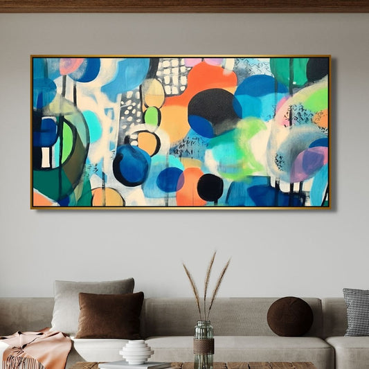Vibrant Abstract Oil Painting with Colorful Geometric Shapes for Modern Decor
