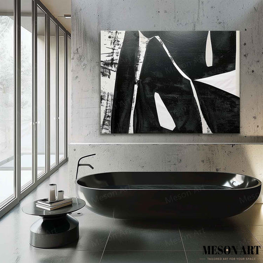 Modern Black and White Minimalist Oil Painting for Contemporary Spaces