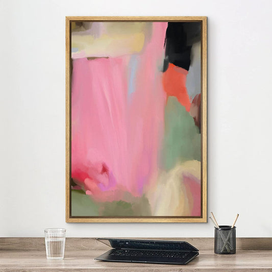 Abstract Oil Painting in Pink and Blue with Fluid Minimalist Design