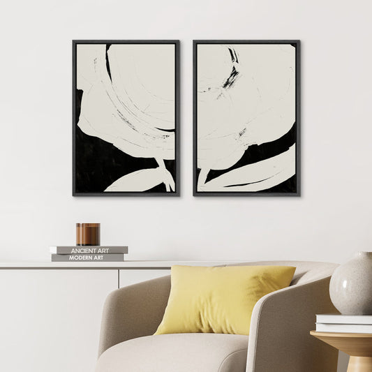 Minimalist Black and White Abstract Oil Painting Set for Modern Home Decor