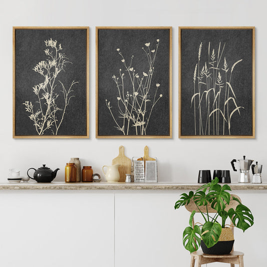 Minimalist Black and Gray Floral Canvas Art Set for Neutral Home Decor