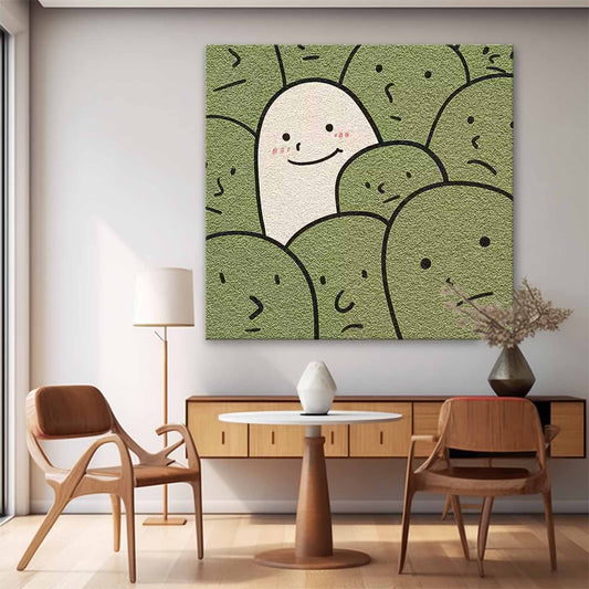 Unique Minimalist Oil Painting of Happy Character in a Crowd