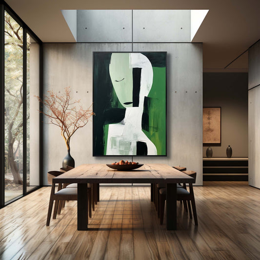 Elegant Minimalist Abstract Oil Painting in Green and Black Tones