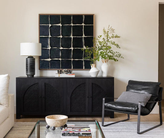 Elegant Black Wabi Sabi Oil Painting for Modern Minimalist Home Decor