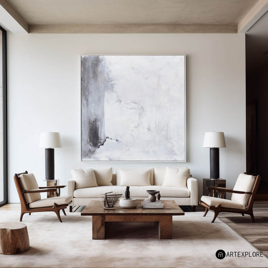 White Minimalist Abstract Oil Painting for Modern Home Decor