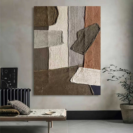 Textured Brown Wabi-Sabi Oil Painting for Minimalist Wall Art Decor