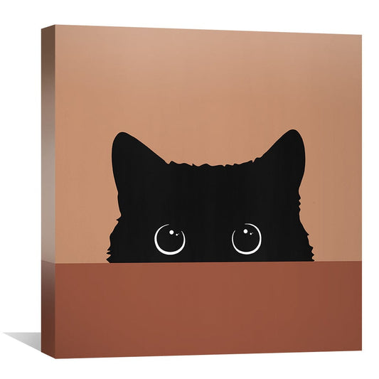 Whimsical Black Cat Peeking Minimalist Oil Painting for Cat Lovers