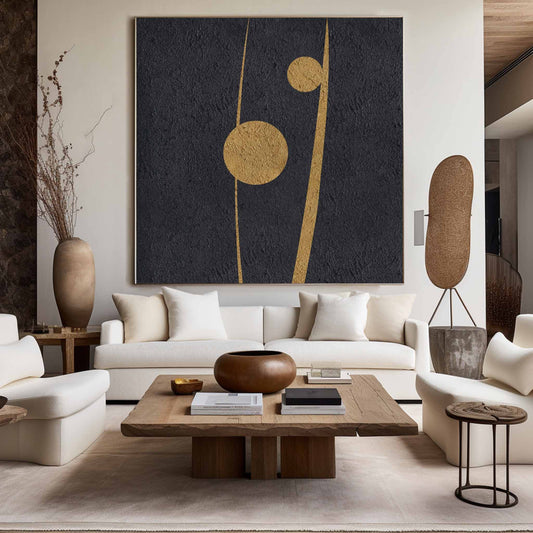 Elegant Black and Gold Abstract Minimalist Oil Painting for Modern Decor
