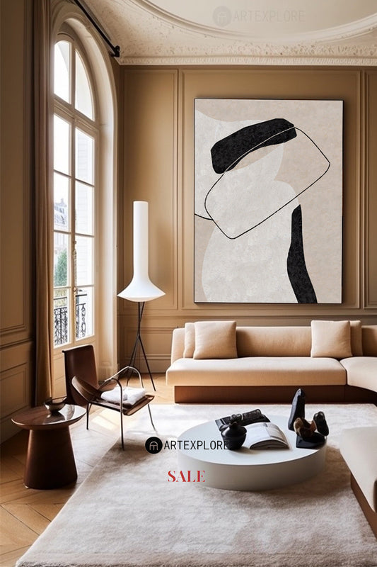 Contemporary Minimalist Oil Painting in Black and White for Modern Interiors