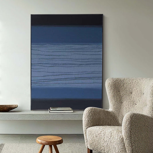 Contemporary Minimalist Blue Oil Painting for Modern Home Decor