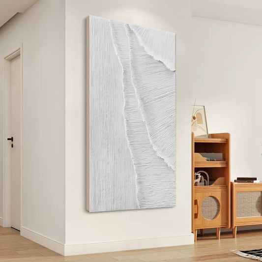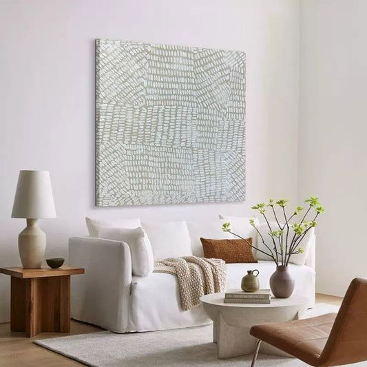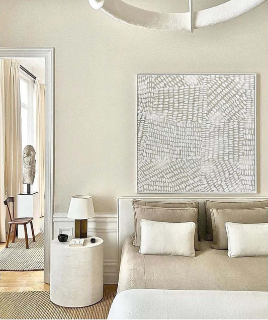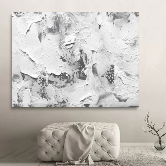 Textured White Abstract Oil Painting for Modern Minimalist Home Decor