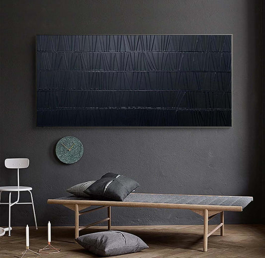Textured Black Minimalist Abstract Oil Painting for Modern Decor