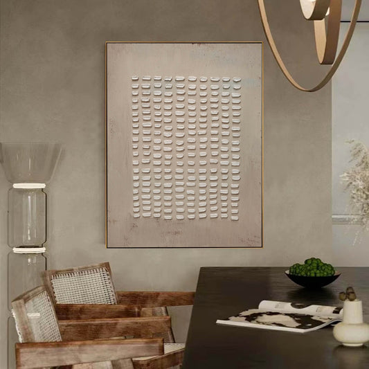 Textured Minimalist Abstract Oil Painting with Soft White Dots