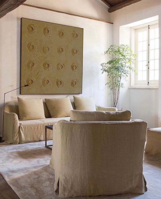 Textured Beige Wabi-Sabi Oil Painting for Modern Minimalist Home Decor