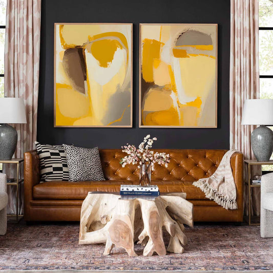Stylish Minimalist Abstract Oil Painting in Warm Yellow and Earth Tones