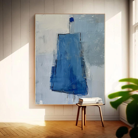 Abstract Blue Minimalist Oil Painting for Contemporary Home Decor