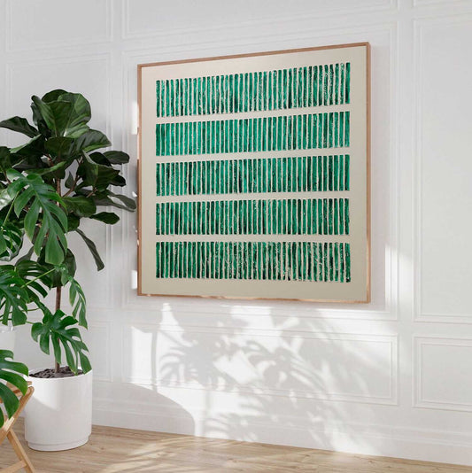 Abstract Green Stripe Oil Painting for Modern Minimalist Home Decor
